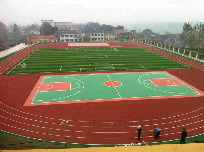 透气型跑道6000平方、硅PU球场2000平方,草坪4000平方