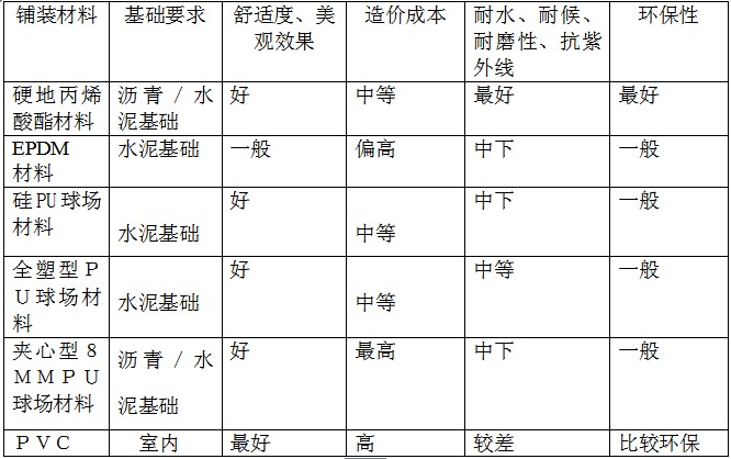 硬地丙烯酸球场、EPDM球场和硅PU/全塑型PU球场