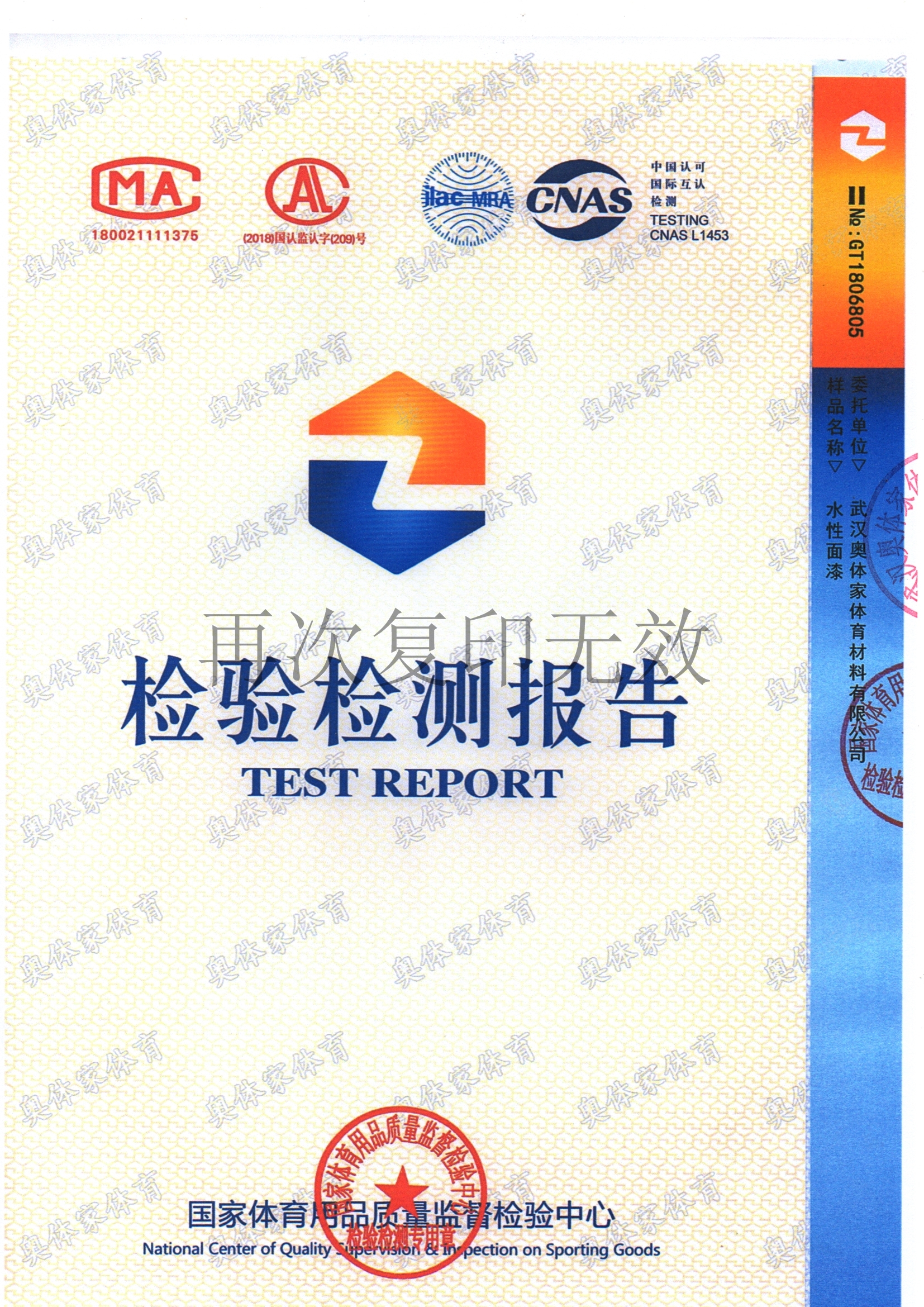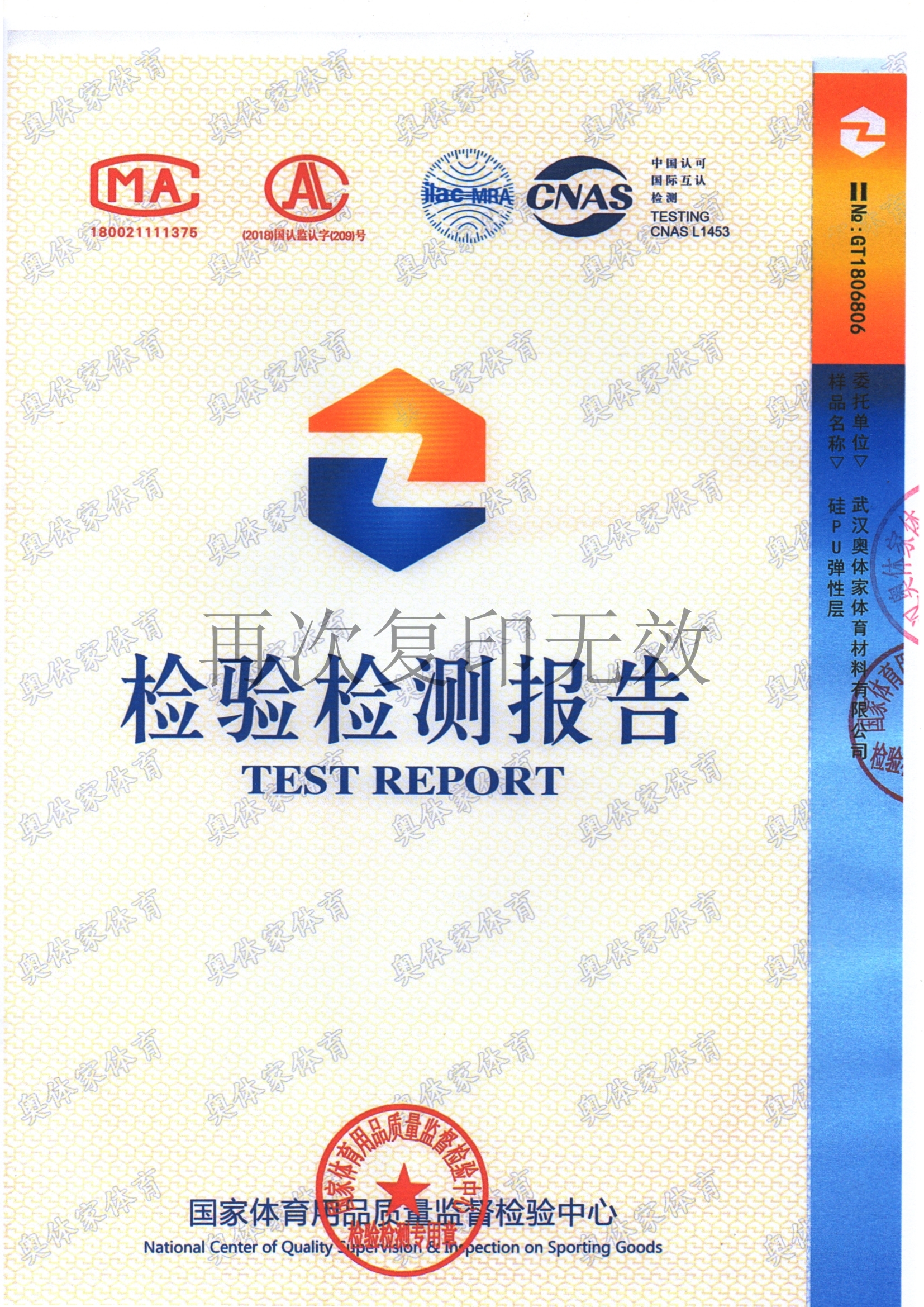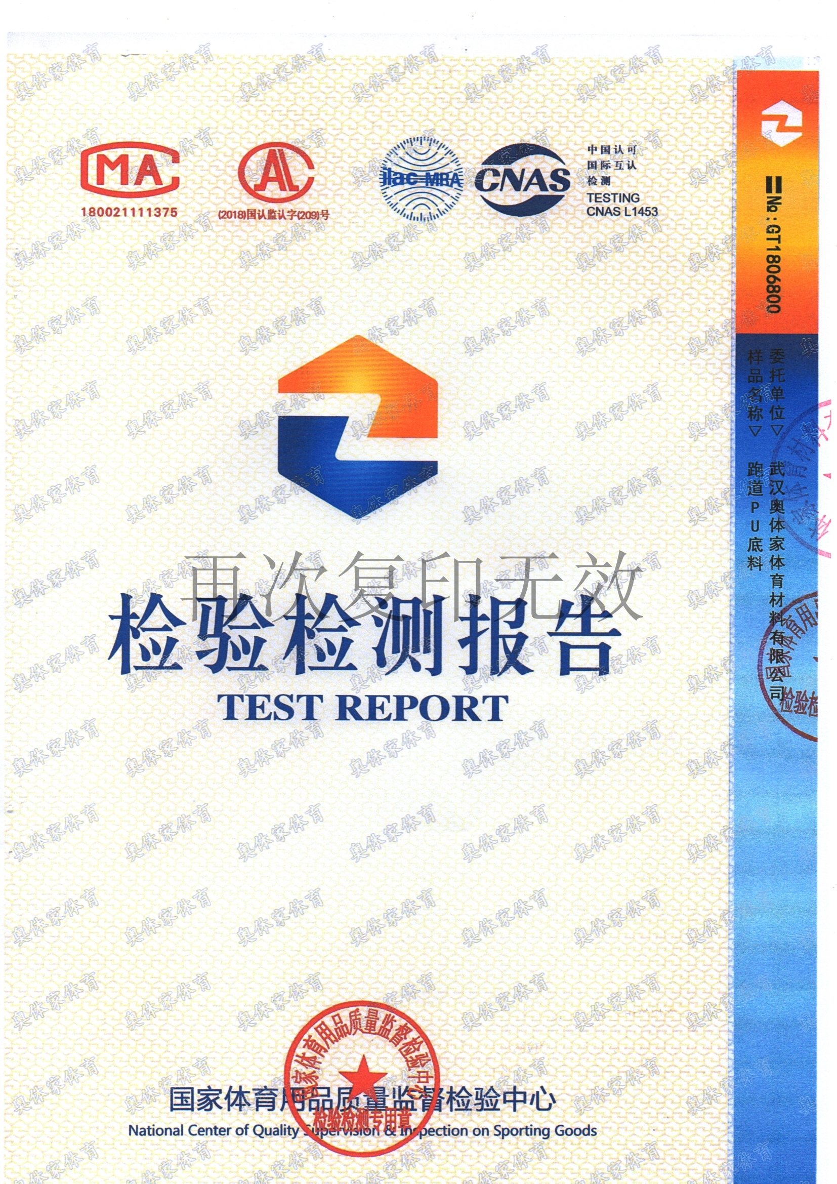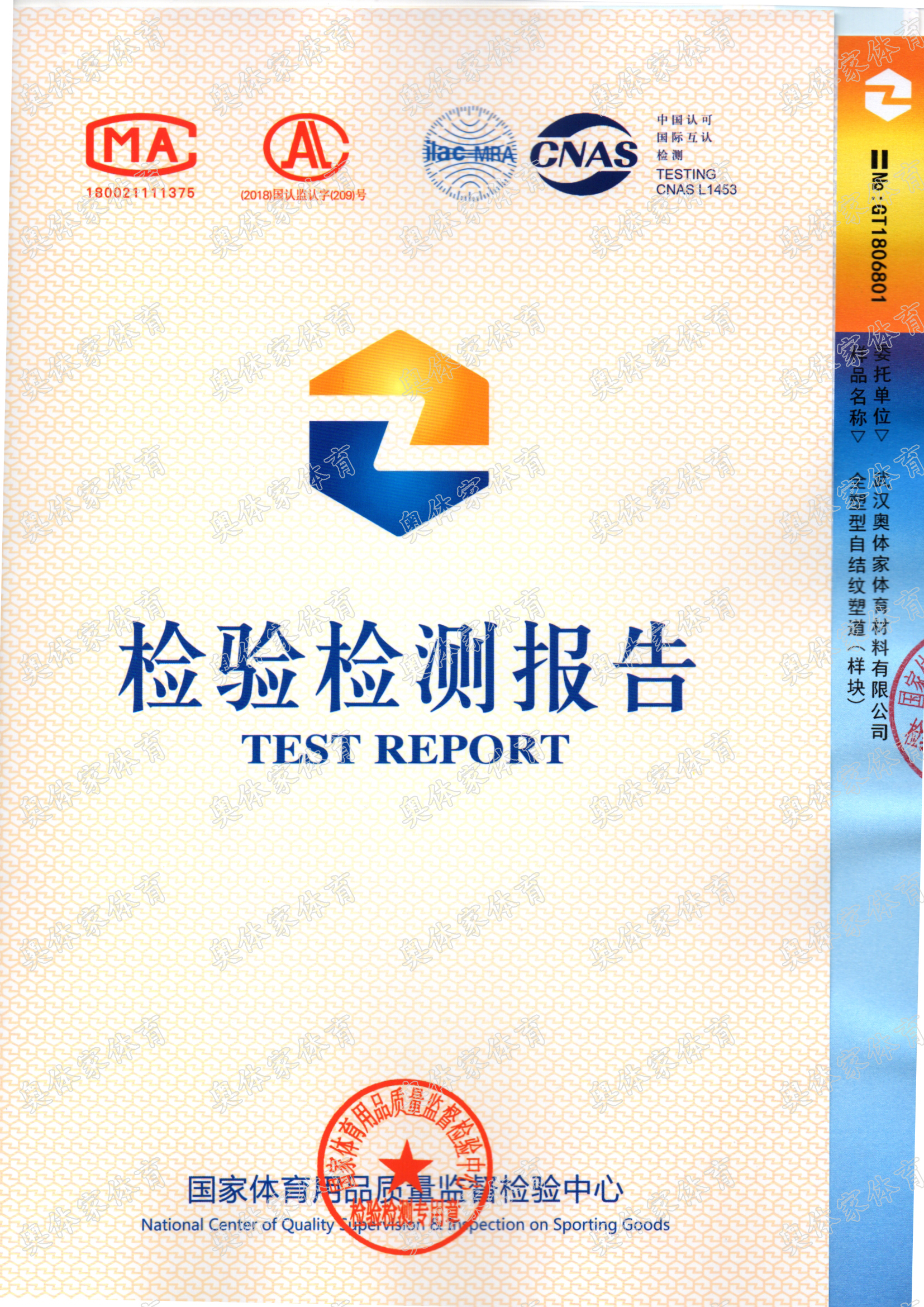 金年会新国标全塑型自结纹塑胶跑道检测报告