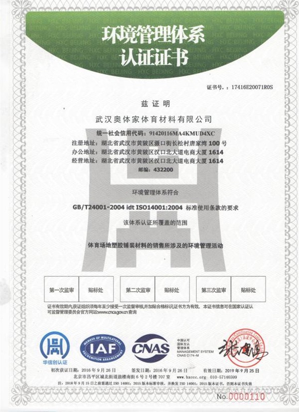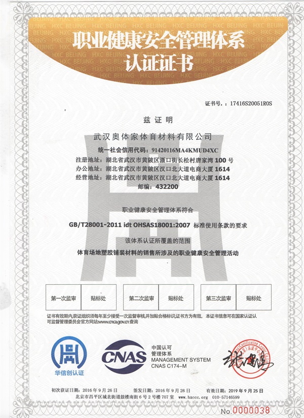 职业健康管理体系认证证书